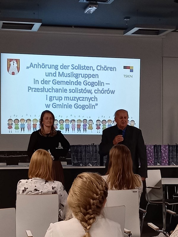 24 listopada 2021 r. w Gminnej Bibliotece Publicznej w Gogolinie odbył się konkurs piosenki niemieckiej pt. "Anhörung der Solisten, Chören und Musikgruppen in der Gemeinde Gogolin - Przesłuchanie solistów, chórów i grup muzycznych w Gminie Gogolin". Jego organizatorem był Zarząd Gminy TSKN w Gogolinie a adresatem uczniowie klas 4-8 szkół podstawowych. Naszą szkołę godnie reprezentowała Marta Hermann z klasy ósmej, która zaśpiewała piosenkę Kerstin Ott „Regenbogenfarben” oraz Anna Gołaś i Anna Komandzik, które w duecie wykonały utwór Helene Fischer „Achterbahn”. Uczestniczkom serdecznie gratulujemy i dziękujemy za udział.