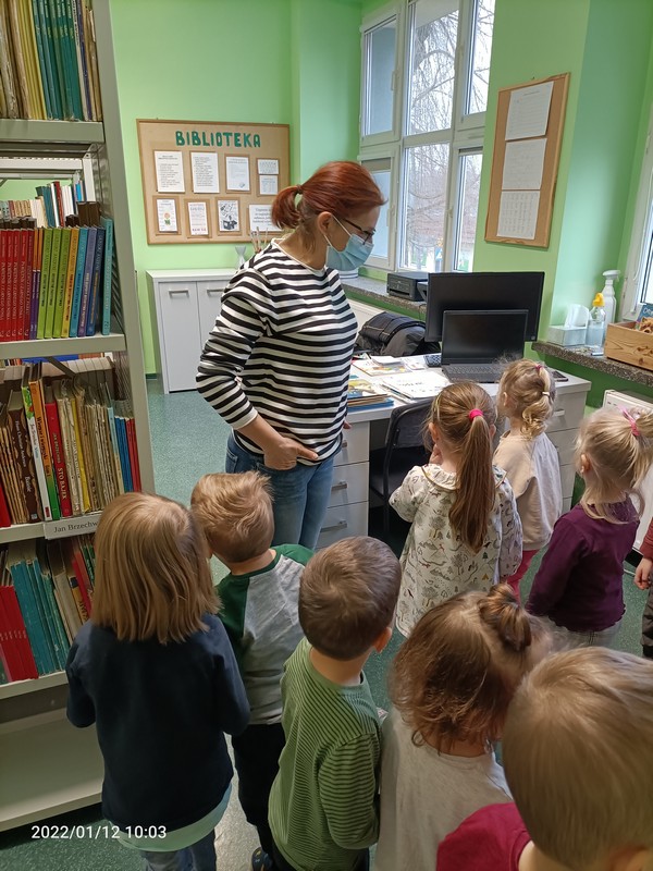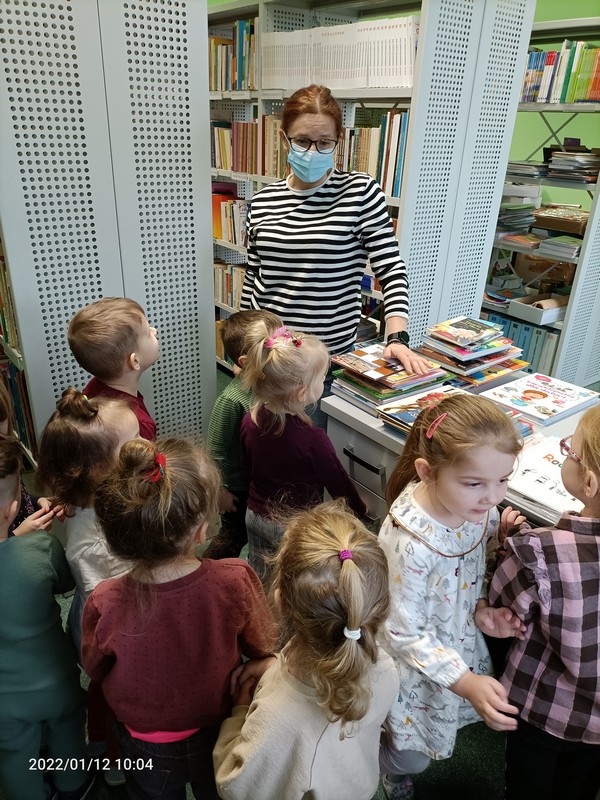 Dzieci również opowiadały o swoich ulubionych książkach i postaciach literackich. W związku z takim tematem udało nam się wybrać do szkolnej biblioteki na krótką lekcje. Dzieci dowiedziały się jak wygląda praca w bibliotece, jak należy się w bibliotece zachować oraz jakie płyną korzyści z czytania bajek.