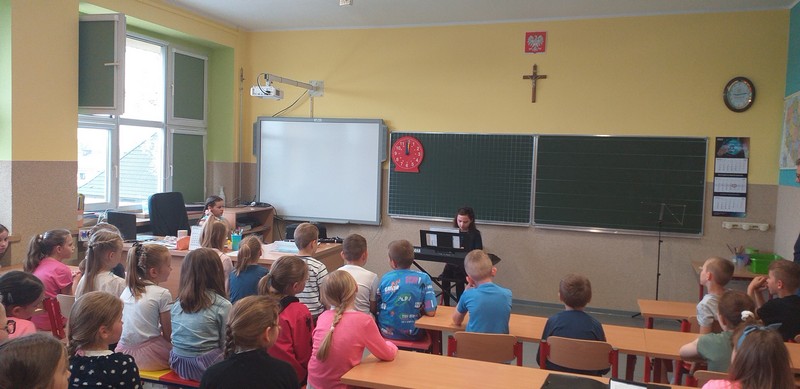 13 maja w naszej szkole dla uczniów klas I-III odbył się koncert muzyczny. Wystąpili w nim nasi koledzy i koleżanki ze szkoły, którzy uczęszczają również do szkoły lub ogniska muzycznego. Usłyszeliśmy utwory na pianinie, klarnecie, trąbce i skrzypcach. Młodzi artyści nagrodzeni zostali gromkimi brawami.