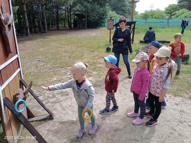26 maja przedszkolaki z grupy Pszczółki i Kamyczki wyruszyły na długo wyczekiwaną wycieczkę. Udaliśmy się do „Stumilowego Lasku” znajdującego się w Żyrowej. Dzieci przez cały tydzień przygotowywały się do odwiedzin tego niezwykłego miejsca poprzez słuchanie przygód bohaterów znanej opowieści pt. „Kubuś Puchatek”. Zabawę rozpoczęliśmy od przejażdżki kolorowym traktorem z wagonikami po terenie wokół lasku. Następnie zwiedziliśmy domki bohaterów z przygód dzielnego misia m.in.: Puchatka, Sowy, Kłapouchego, Kangurzycy, Królika, Tygryska, w których można było się swobodnie pobawić. Później odwiedziliśmy wioskę indiańską, gdzie czekało na nas dużo atrakcji takich jak strzelanie z łuku czy przejście przez chwiejącą się kładkę. Po wyczerpującej zabawie zjedliśmy małe „co nieco” i wróciliśmy do odkrywania lasku. Oczywiście nie zapomnieliśmy o prezencie dla misia i podarowaliśmy mu jego ulubiony przysmak, czyli miód. Już nie możemy się doczekać następnego wyjazdu!