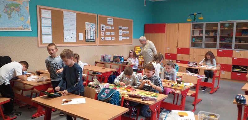 W dniu 24 października uczniów klasy trzeciej odwiedziła pani Irena Pawlyta – bibliotekarka Gminnej Biblioteki Publicznej w Gogolinie. Pani Irena podsumowała razem z dziećmi wiadomości o jesieni. Następnie, z wielkim zaangażowaniem, dzieci wykonywały prace z liści. Pojawiły się wiewiórki, ptaszki, motyle, sowy. Zajęcia dla dzieci były bardzo ciekawe i kreatywne.