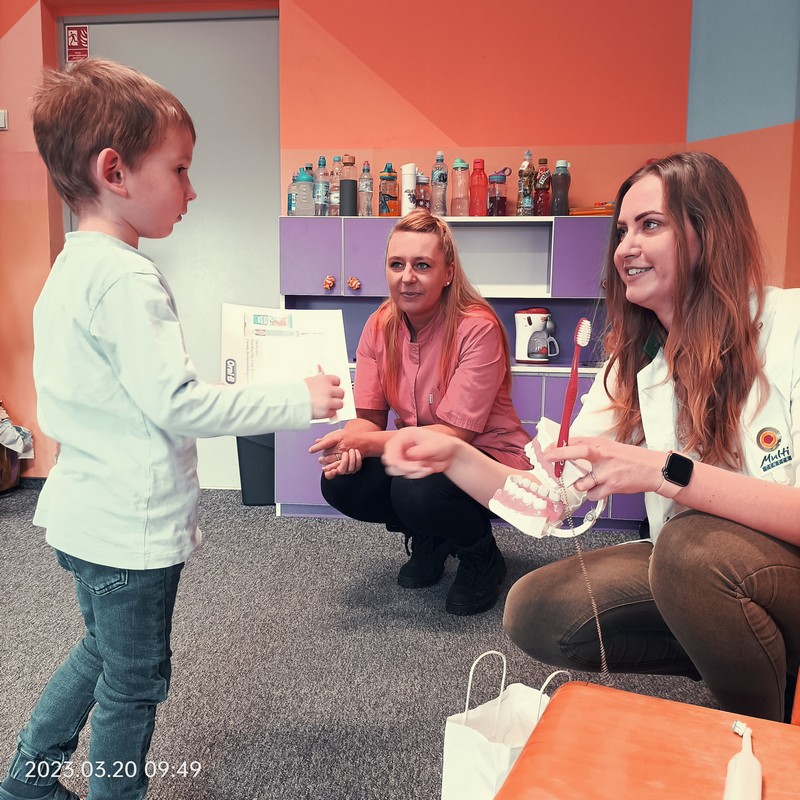 Jednym z celów było uświadomienie dzieciom z obu grup konieczności dbania o higienę jamy ustnej, zapoznaniem się z zawodem stomatologa oraz zmniejszeniem obawy przed wizytą w gabinecie. Przedszkolaki wysłuchały pogadanki na temat właściwej higieny jamy ustnej. Dowiedziały się, co to jest próchnica, dlaczego psują się zęby i jakie produkty na to wpływają oraz jak należy prawidłowo je czyścić. Ogromną atrakcją były ćwiczenia praktyczne na eksponacie sztucznej szczęki.