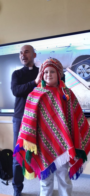 W dniach 15-16 maja gościliśmy ks. Darka Flak, który 11 lat pracował w Andach Peruwiańskich. Spotkanie z misjonarzem uwrażliwiło nasze serca na postawę wdzięczności za to, do czego przyzwyczailiśmy się w codziennym życiu oraz otwartość na ludzi biednych. Mogliśmy zobaczyć z jaką radością dzieci codziennie chodzą do szkoły oddalonej godzinę, a nawet dwie w jedną stronę. Są one tak odmienne od naszej pięknej, kolorowej i dobrze wyposażonej szkoły. Uwieńczeniem spotkania były pamiątkowe zdjęcia w kolorowych strojach, ręcznie utkanych przez Peruwianki.