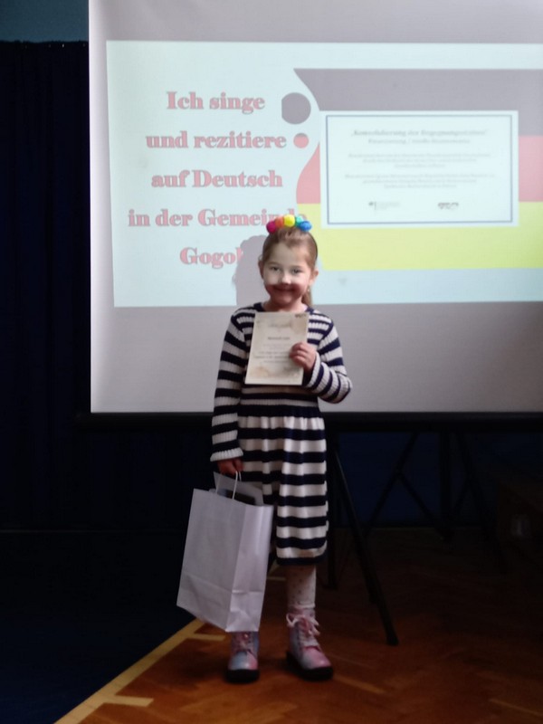 15.11.2023 roku odbył się w Górażdżach konkurs piosenki niemieckiej „Śpiewam i recytuję po niemiecku w gminie Gogolin", którego organizatorem jest Mniejszość Niemiecka. Naszą szkołę i przedszkole godnie reprezentowali następujący uczniowie: