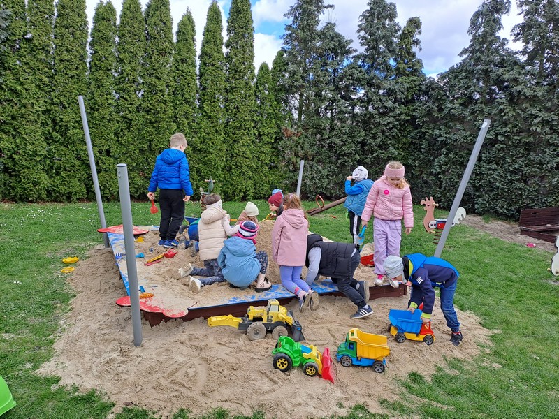 Marzec upłynął w naszym przedszkolu niezwykle szybko i intensywnie. Co chwilę czekało na dzieci wiele atrakcji. Rozpoczęliśmy od świętowania Dnia Kobiet, podczas którego chłopcy złożyli dziewczynkom życzenia oraz obdarowali je drobnymi upominkami. Następnie witaliśmy Pierwszy Dzień Wiosny. Wraz z końcem miesiąca szukaliśmy zajączka, który przyniósł przedszkolakom nie tylko prezenty ale i wspaniałą piaskownicę.