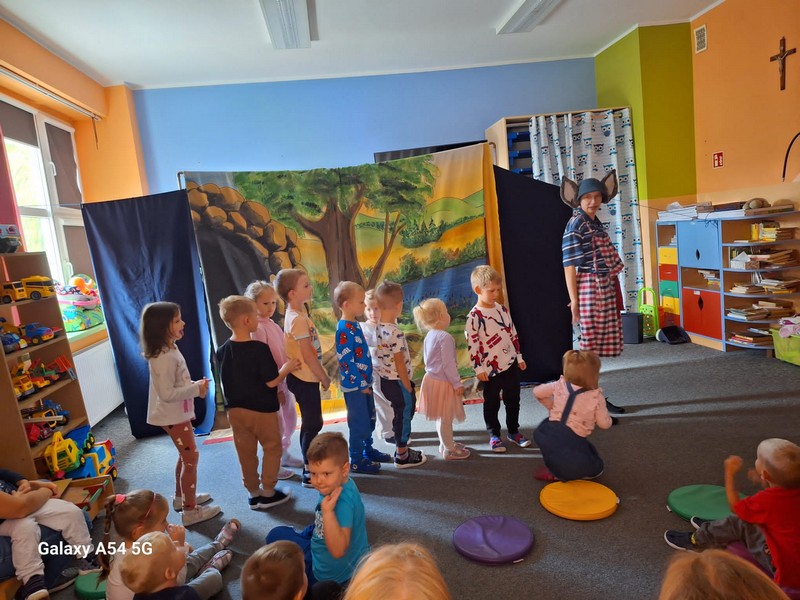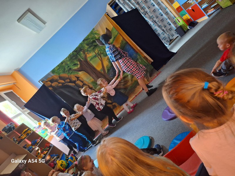 W piątek 11 października 2024 r. nasze przedszkole odwiedzili artyści ze Studia Teatralnego Krak-Art- Bis ze sztuką pt.: „Pinokio”. Dzieci przeniosły się w świat drewnianego chłopca i wspólnie z nim przeżywały wiele pouczających przygód. Przedszkolaki podziękowały aktorom za piękny występ nagradzając ich gromkimi brawami.