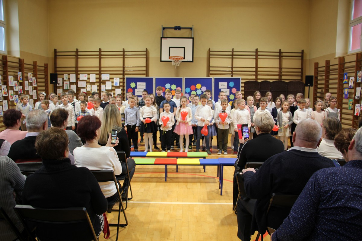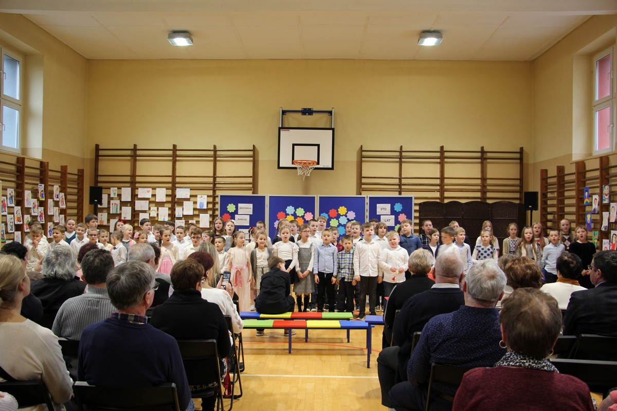 21 stycznia 2025 r. uczniowie naszej szkoły przygotowali program artystyczny z okazji Dnia Babci i Dziadka. Chcieli w ten sposób uczcić tak ważny dzień, bowiem tak wiele zawdzięczamy naszym Babcia i Dziadkom. To właśnie dziadkowie dają swym wnukom tyle ciepła, radości i miłości. Mali artyści z przejęciem recytowali wiersze i śpiewali piękne piosenki, a czcigodni goście ze wzruszeniem odbierali czułe słowa kierowane pod ich adresem, a duma rozpierała ich serca, że mają tak utalentowane wnuczęta. To był naprawdę wyjątkowy dzień, pełen uśmiechu, radości i dumy. Dzień, który ukazał nam, jak ważne są takie spotkania i wspólnie spędzone chwile. Na koniec występów wszyscy uczniowie zaśpiewali wspólnie 100 lat.