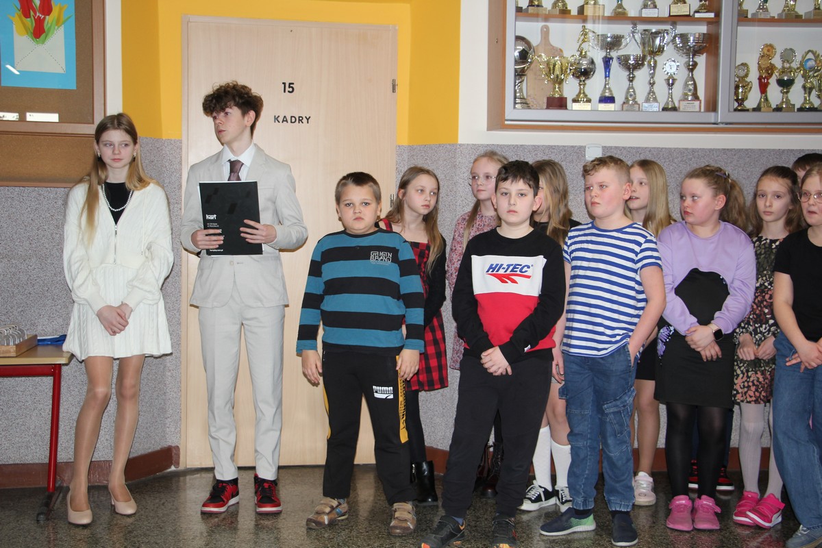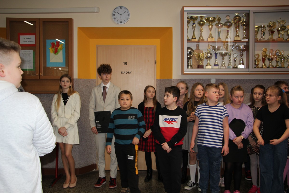 11 marca w naszej szkole obchodziliśmy Dzień Kobiet. Dziewczynki z tej okazji miały dzień spódniczki. O 10 odbył się krótki apel, podczas którego ogłoszono wyniki wyborów Miss i Mistera szkoły z podziałem na trzy kategorie wiekowe. W klasach I-III Miss została Paulina Dybaś z klasy I, Misterem -Wiktor Kuboń z klasy III. W klasach IV-VI tytuł Miss zdobyła Hanna Sekuła (kl. IV), a Mistera Piotr Gebauer (kl. IV). W klasach VII-VIII Miss została Zuzanna Kapinos (kl. VII), Misterem został Igor Glensk (kl. VII). W związku z tym, że 10 marca był Dniem Mężczyzn na apelu odbył się konkurs na wiązanie krawata na czas, wzięli w nim udział zarówno chłopcy jak i dziewczynki. Najszybszy okazał się być Tomasz Gebauer. Samorząd Szkolny z tej okazji sprezentował również małe upominki dla Pań nauczycielek.